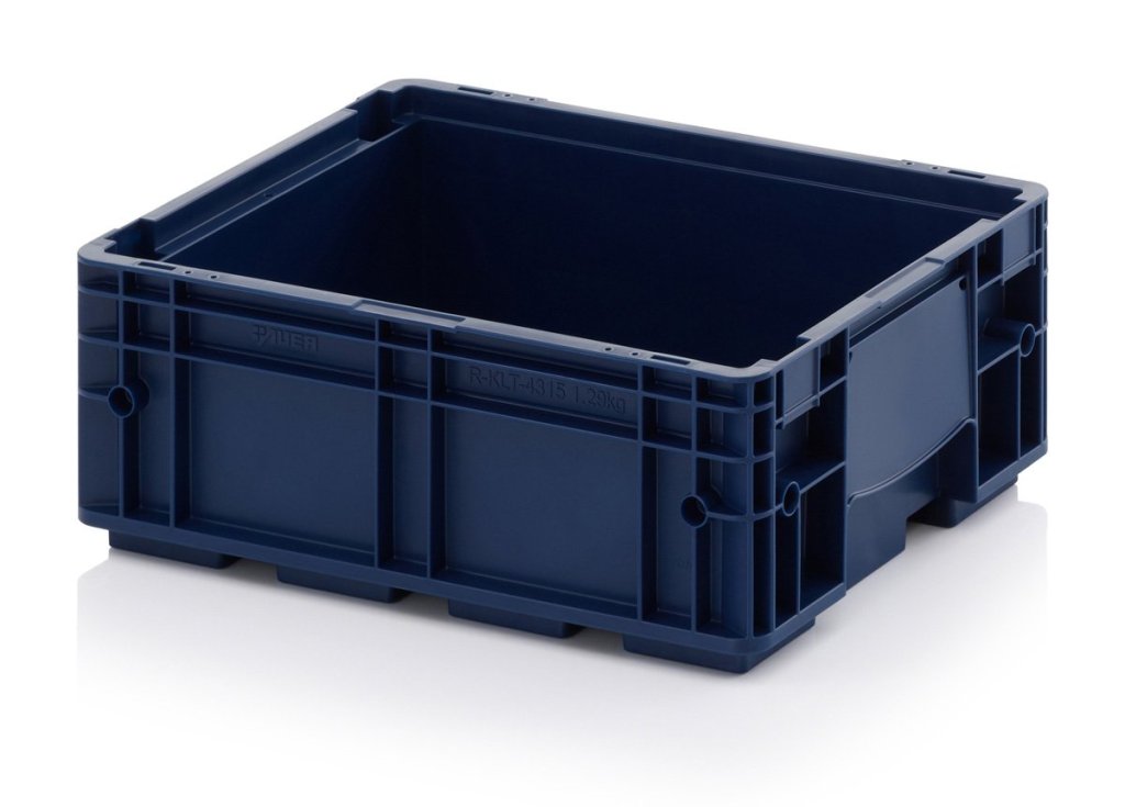 R-KLT crate made of high-quality polypropylene resistant to oils, fats and most acids and alkalis. Thermal stability from -20° to 100° C, color RAL 5003 blue. Dimensions h. 280 x w. 400 x d. 600 mm. Extremely stable composite bottom, crate capacity 20 kg, max. stacking capacity 600 kg.