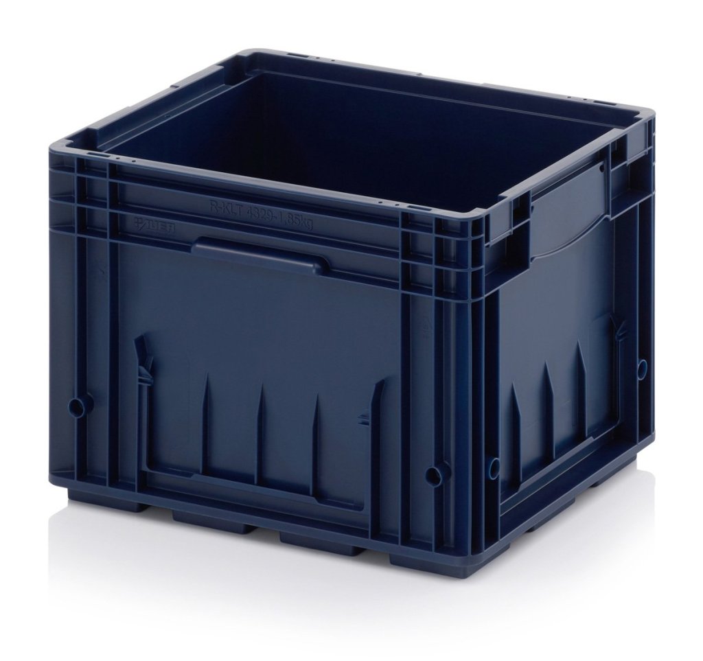 R-KLT crate made of high-quality polypropylene resistant to oils, fats and most acids and alkalis. Thermal stability from -20° to 100° C, color RAL 5003 blue. Dimensions h. 280 x w. 400 x d. 600 mm. Extremely stable composite bottom, crate capacity 20 kg, max. stacking capacity 600 kg.