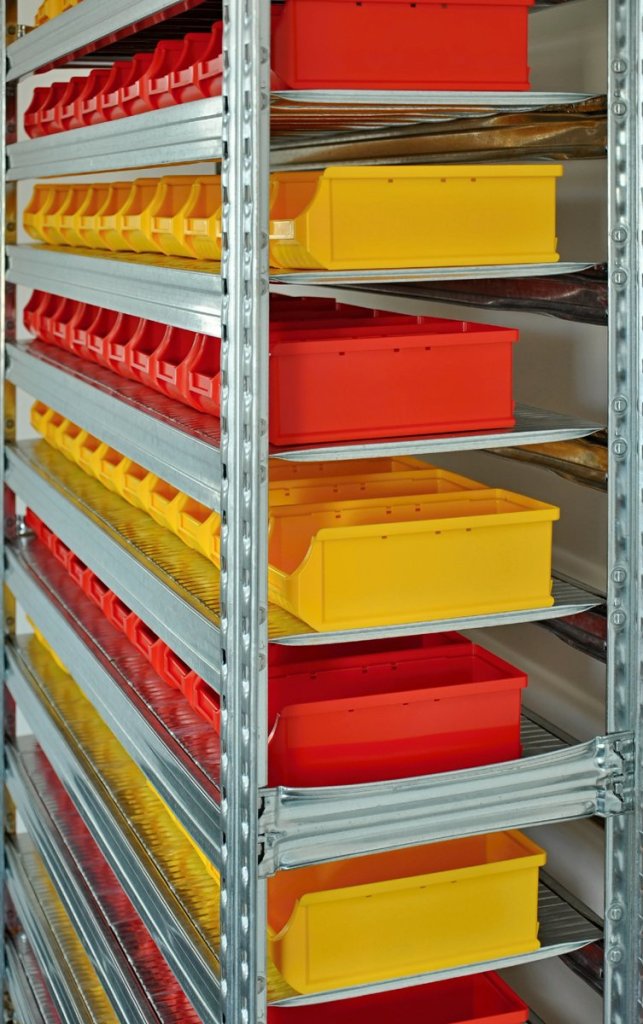Screwless metal rack with plastic boxes. 15x shelves, load capacity 125 kg, column load capacity 1100 kg. Rack dimensions h. 1972 x w. 1124 x d. 330 mm. Contains 70x plastic box 456230 and 70x plastic box 456231. Warranty 2 years.