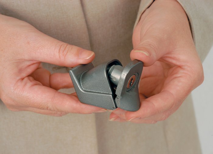 Removable portable lock for MySpace cabinets. It serves for workers who have different workplaces within the same building or even in more distant places. They simply choose an empty locker and lock it with their personal Dock Lock with cylinder key.