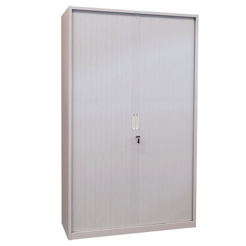 Rolled dismantled cabinet made of sheet steel 0.6 mm thick. Height 1980 x width 1200 x depth 450 mm, 4 shelves, cylinder lock with two keys. Surface treatment with powder paint - body gray RAL 7047, blind light gray.