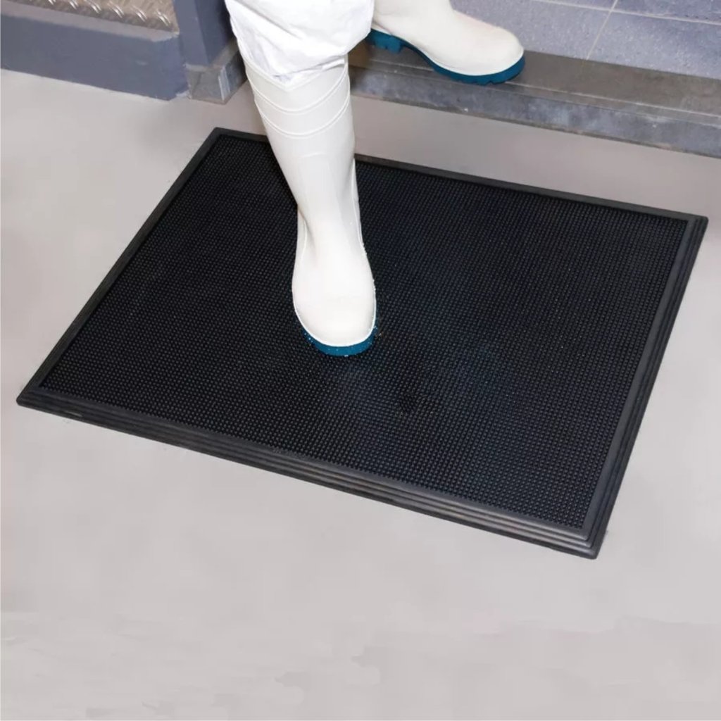 The Sani-Trax black rubber disinfectant hygienic mat cleans and disinfects the soles of shoes. Thousands of flexible rubber full description and parameters