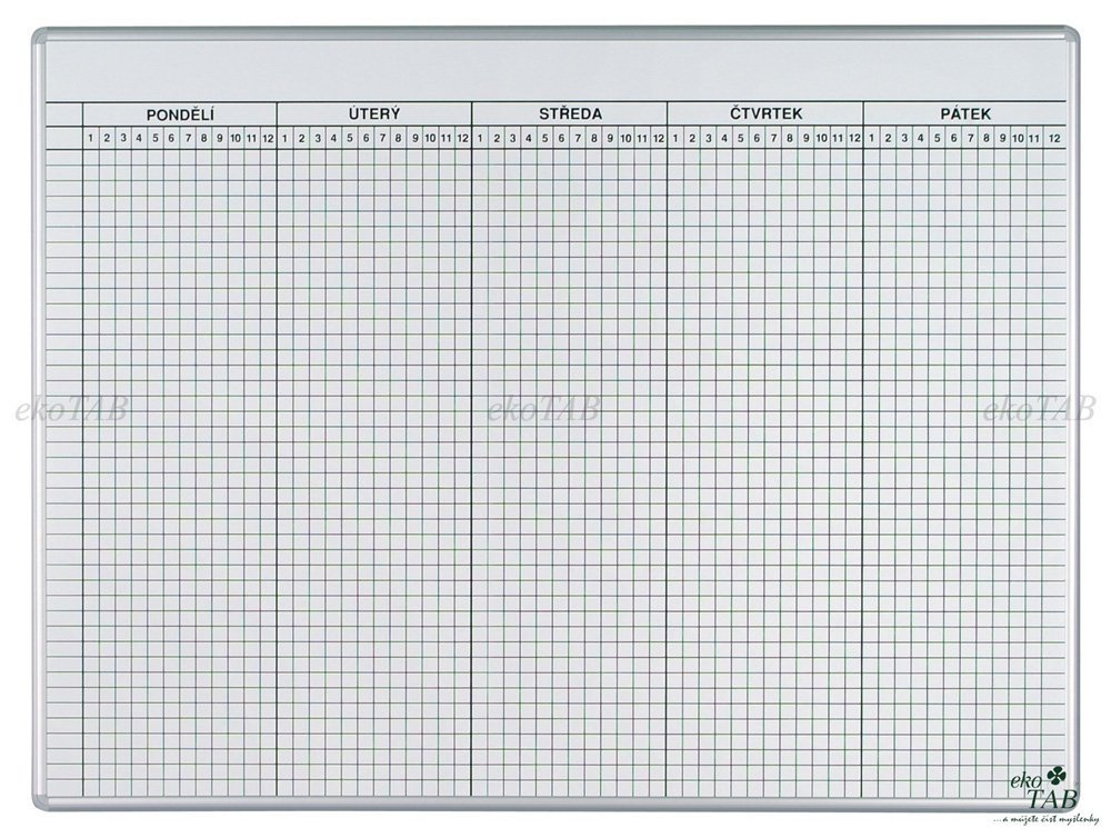 Schedule magnetic board. The board is produced in two sizes: up to 26 classes 0 - 8 hours, up to 40 classes 1 - 12 hours. Blackboard frame from anodized aluminum, plastic corners. Supplied with wall mounting kit.