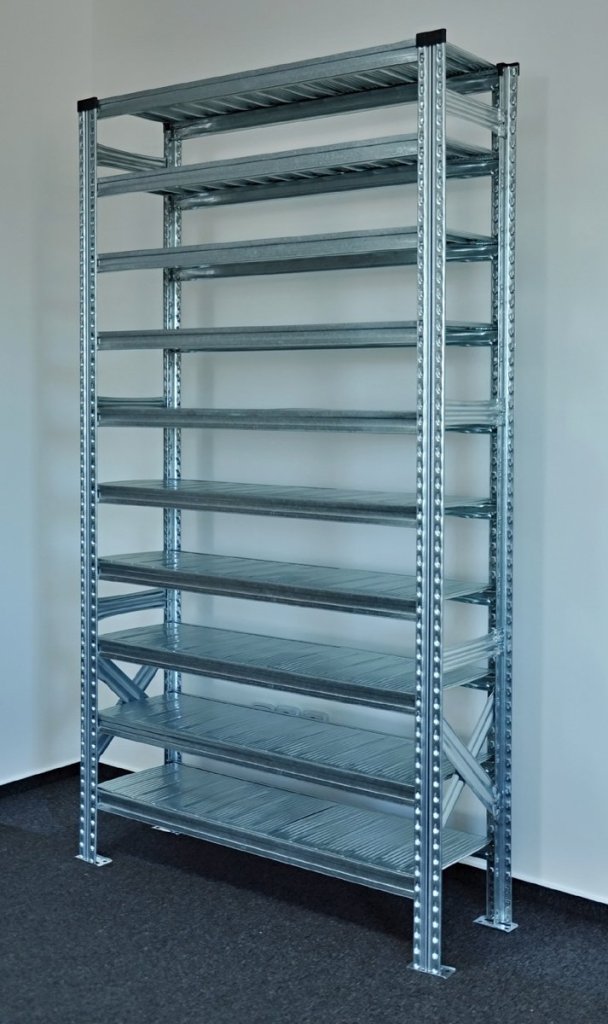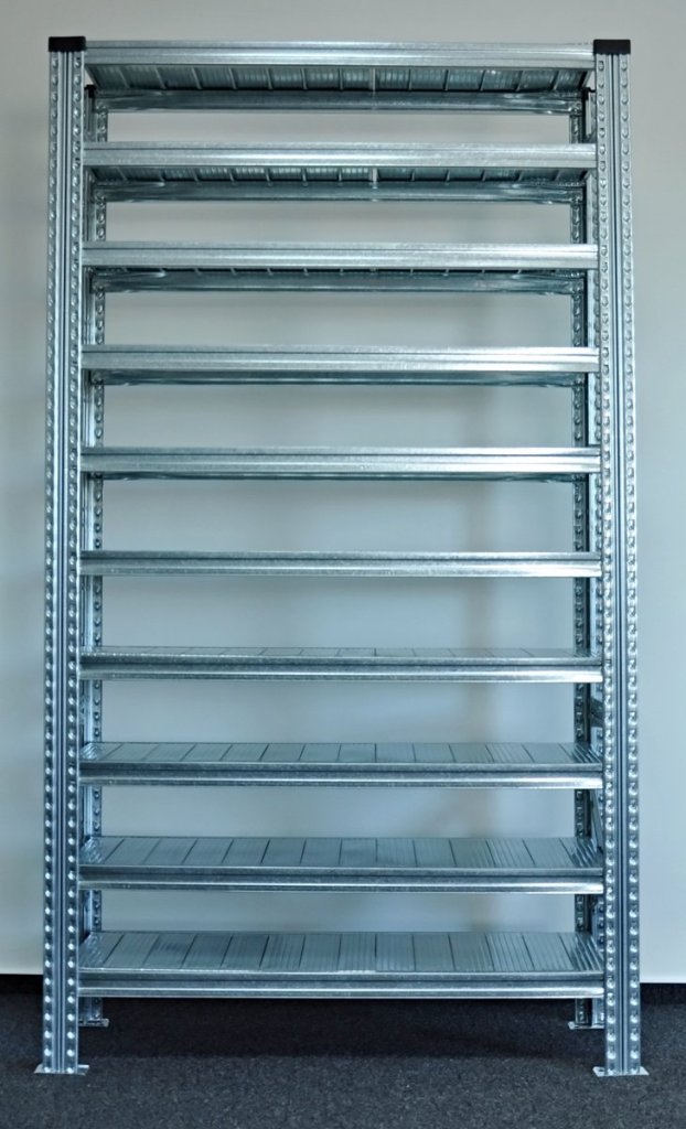 Screwless shelf rack. 10x shelves, load capacity 125 kg. Dimensions h. 1972 x w. 1124 x d. 330 mm. full description and parameters