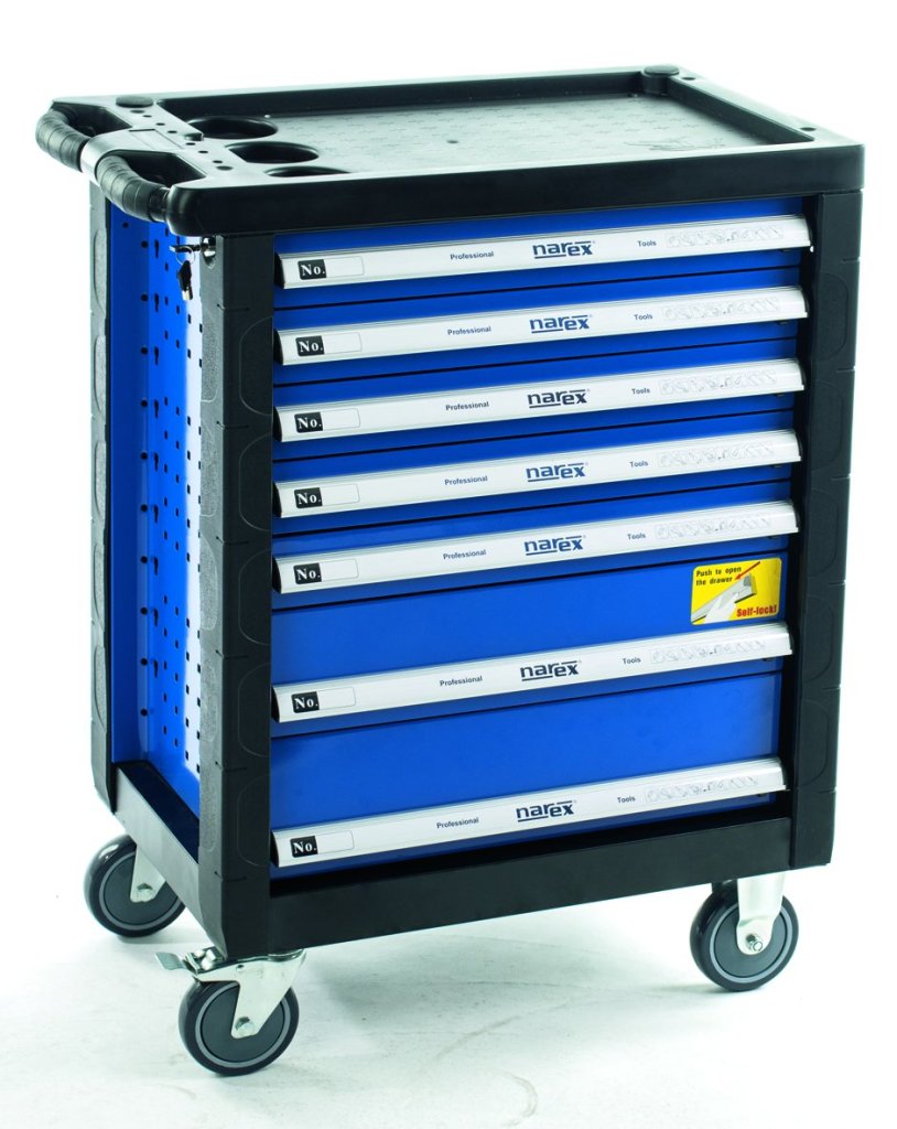 7-drawer workshop service trolley. Height 958 x Width 766 x Depth 465mm. 5x 58mm socket, 1x 115mm socket and 1x 138mm socket. 2 full description and parameters