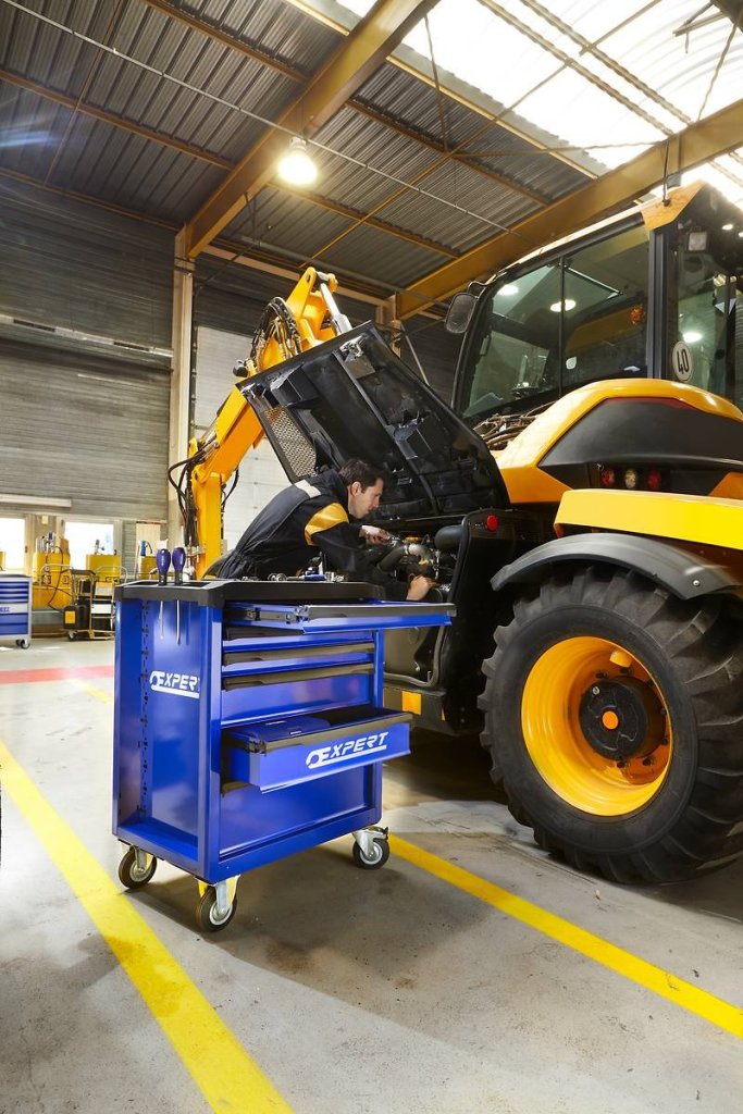 7-drawer workshop service trolley. Height 970 x width 748 x depth 515 mm. 4 x 60 mm socket and 3 x 130 mm socket. 2 swivel and 2 fixed wheels, handle. Color blue/anthracite.