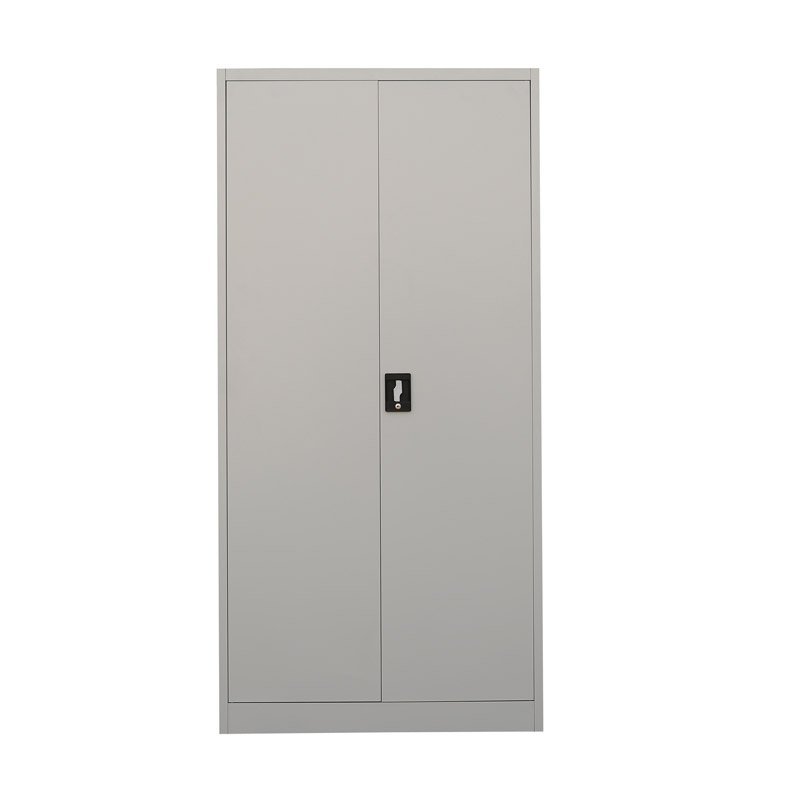 Two-door dismantled cabinet made of sheet steel 0.6 mm thick. Height 1850 x width 900 x depth 390 mm, 4 x shelves, cylinder lock with two keys. Surface treatment with gray powder paint RAL 7047.