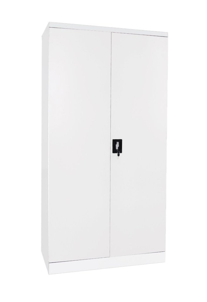Two-door dismantled cabinet made of sheet steel 0.6 mm thick. Height 1950 x width 900 x depth 400 mm, 4 x shelves, cylinder lock with two keys. Surface treatment with powder paint.