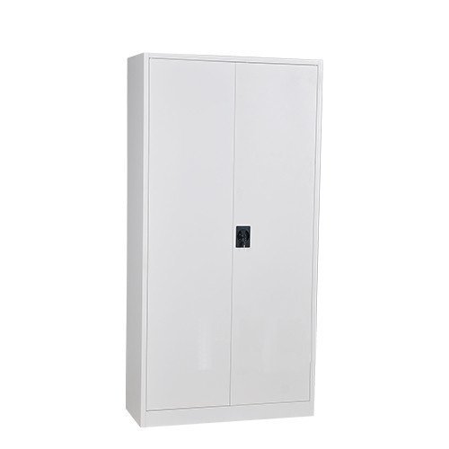 Two-door dismantled cabinet made of sheet steel 0.6 mm thick. Surface treatment with antistatic gray powder paint RAL 7035. Height 1850 x width 900 x depth 390 mm, 4 x shelves, cylinder lock with two keys.