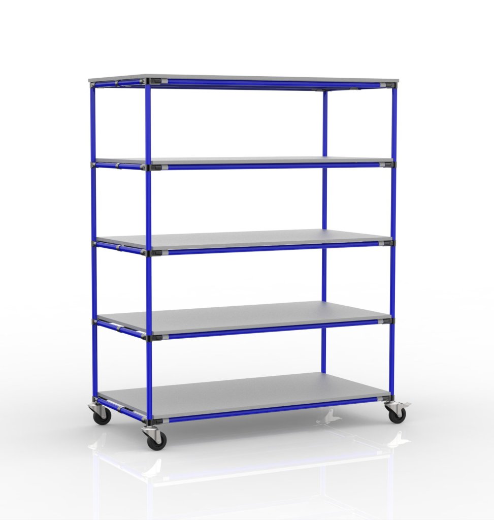 The shelf rack with five straight shelves is a practical helper for handling in manufacturing companies and logistics centers, especially in the field of e-commerce. The cart includes four swivel wheels with a diameter of 100 mm. The advantage of these wheels is low rolling resistance and, thanks to this, comfortable handling. The configuration of the wheels can be changed according to the customer's requirements. Total load capacity 300 kg, load capacity on the shelf 75 kg. Dimensions 1900 x 1505 x 755 mm.