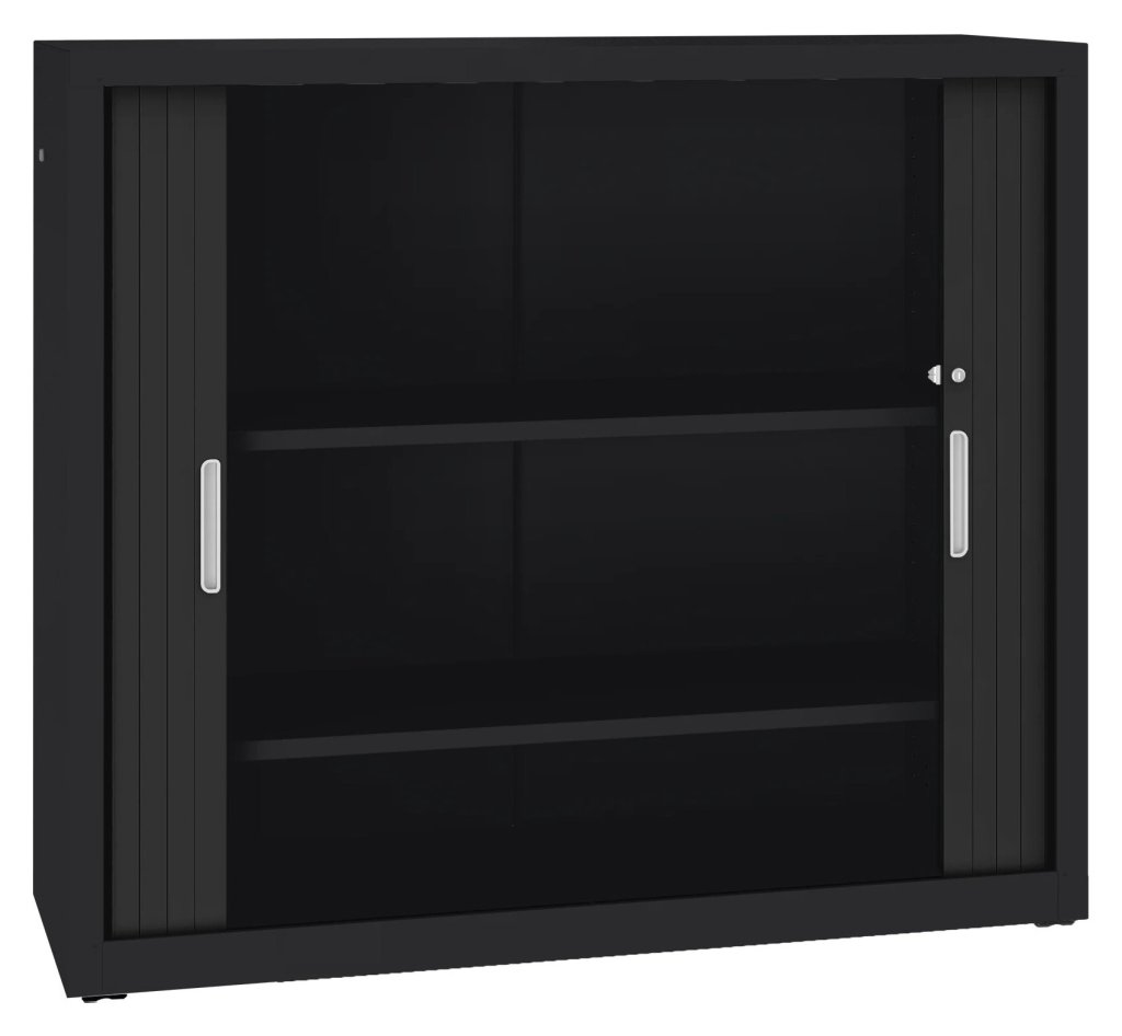 Metal cabinet with horizontal shutter with 2 shelves. Shelf capacity 40 kg. Various colors to choose from. Height 1040 x Width full description and parameters