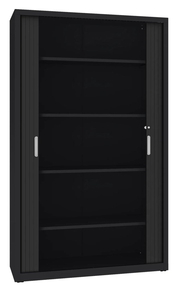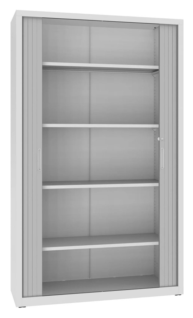 Metal cabinet with horizontal shutter with 4 shelves. Shelf capacity 40 kg. Various colors to choose from. Height 1990 x width 1200 x depth 435 mm.