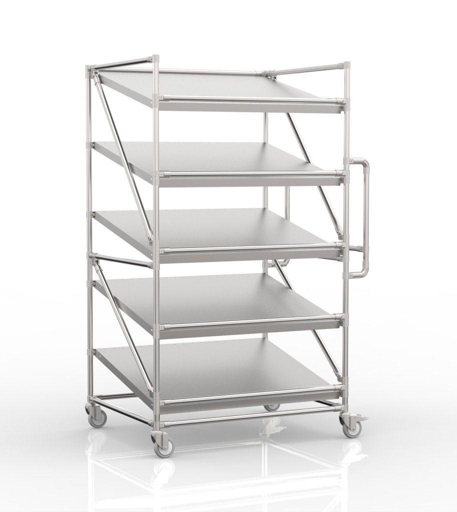 The crate trolley with five inclined shelves is a practical helper for handling in manufacturing companies and logistics centers. full description and parameters