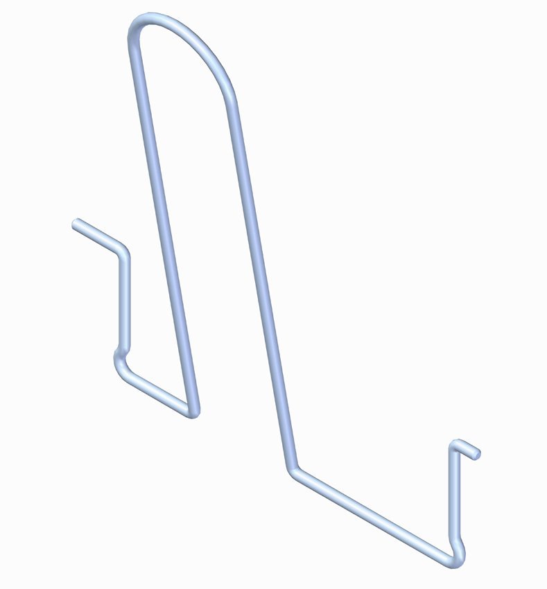 Plastic hook, hangs from a circular crossbar.