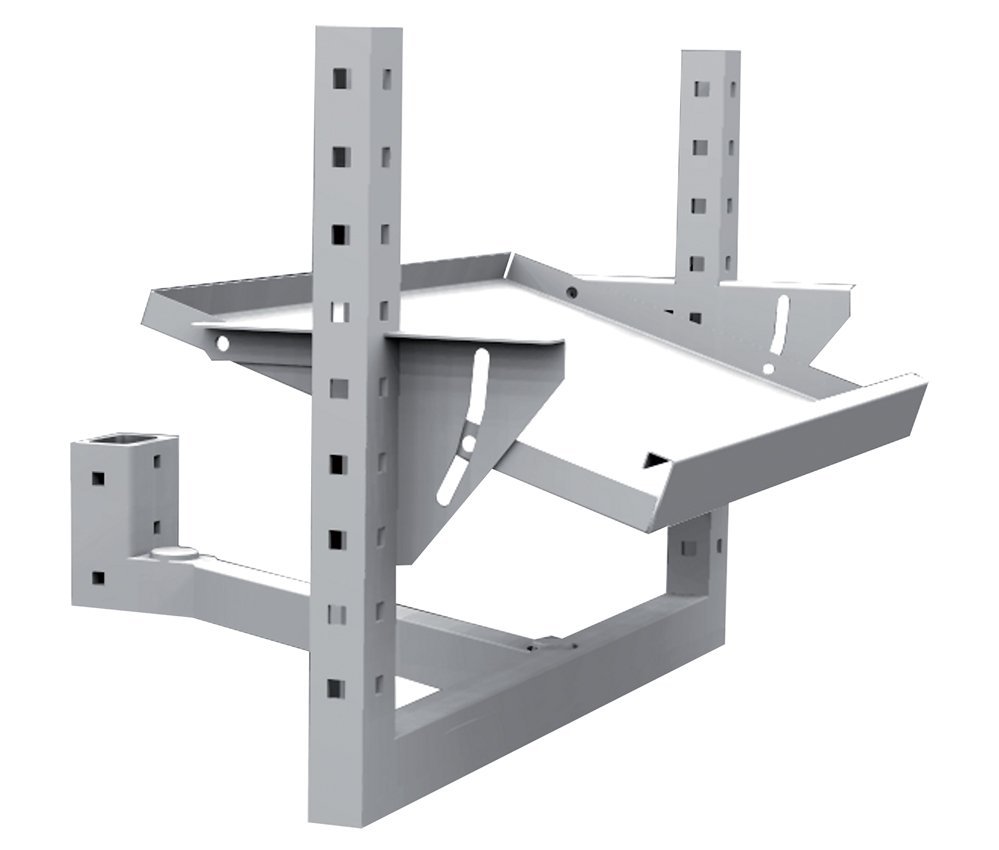 Folding shelf for MTS table in length 2000 mm. It is mounted on the perforated panel MTR 02A. Shelf size 140 x 840 x 400 mm.