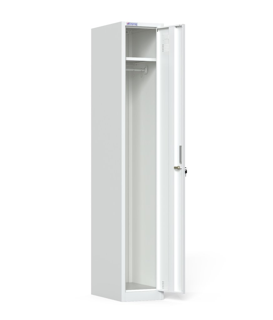 Wardrobe dismantled cabinet, height 1800 x width 300 x depth 500 mm. Locking with a cylinder lock with two keys. Surface treatment with powder paint gray RAL 7047.