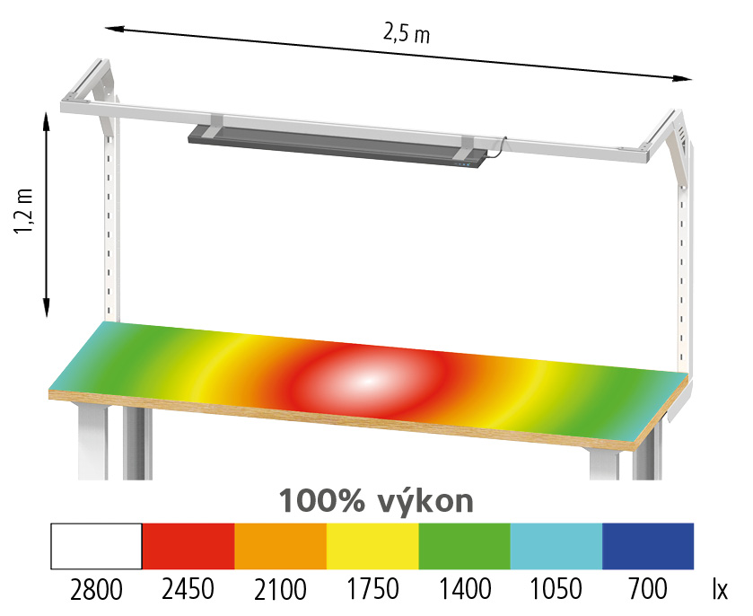 light intensity Emax. (1.2 m above the work surface) |