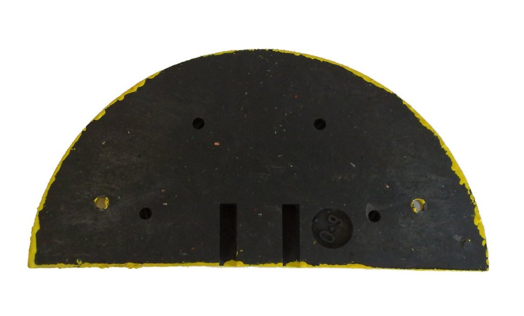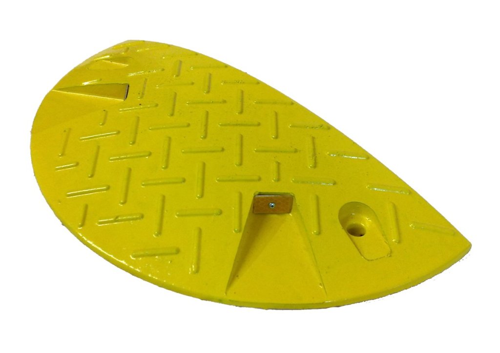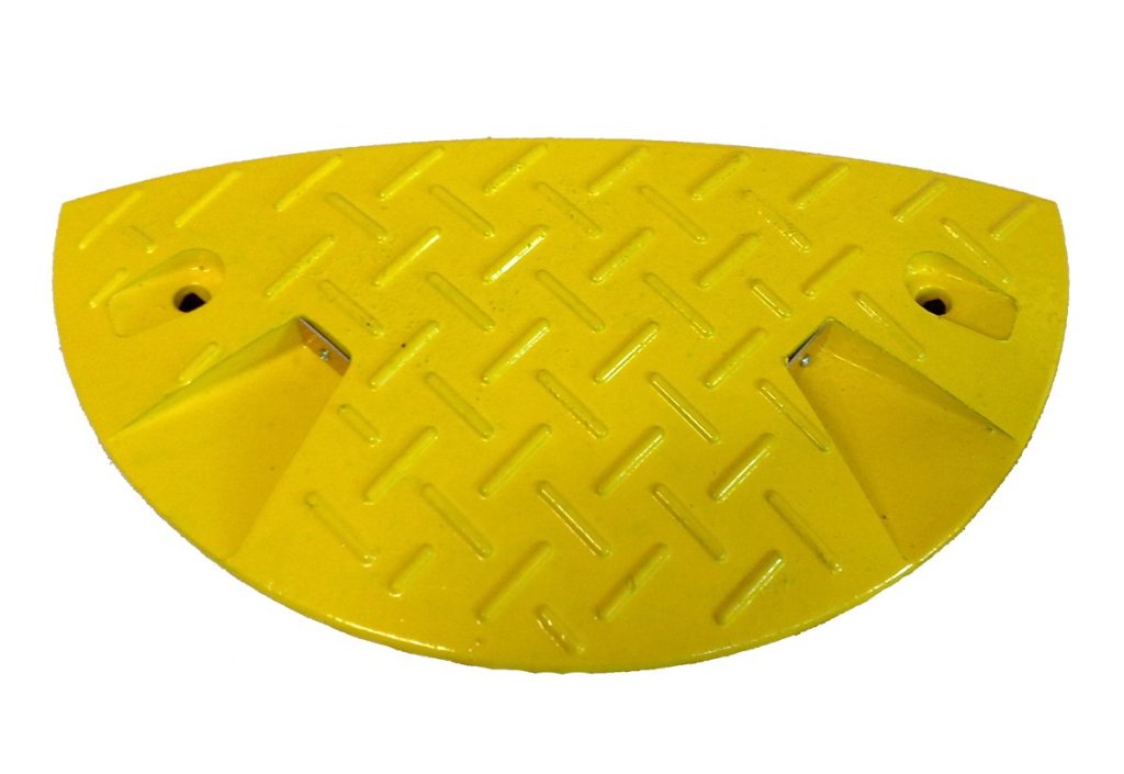 Construction-traffic equipment to reduce undesirable vehicle speeds or to comply with permitted vehicle speeds on local roads. Use – roads, parking lots, entrances to buildings. Speed 10 km/h, color yellow. Made from a durable recycled compound. Highly visible at night. Height 60 x width 215 x depth 430 mm.