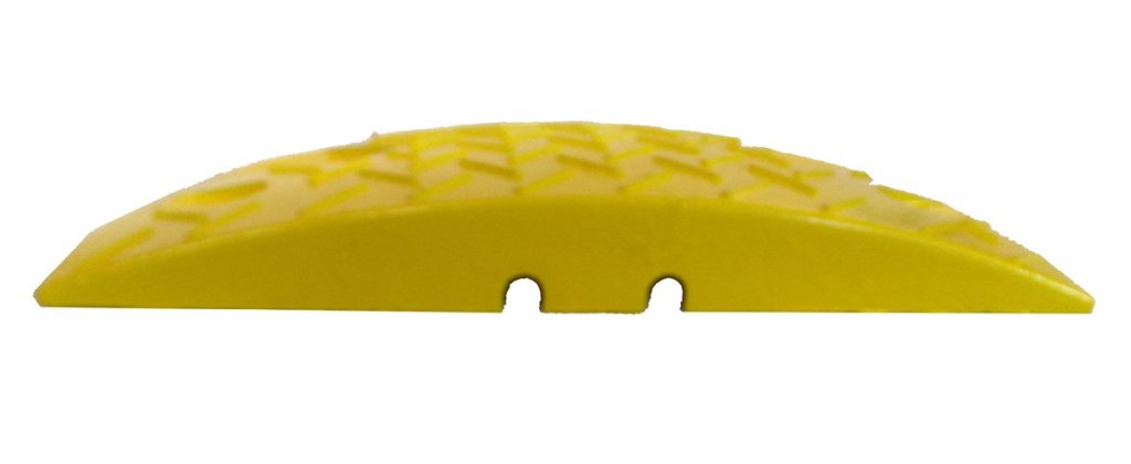 Construction-traffic equipment to reduce undesirable vehicle speeds or to comply with permitted vehicle speeds on local roads. Use – roads, parking lots, entrances to buildings. Speed 30 km/h, color yellow. Made from a durable recycled compound. Highly visible at night. Height 30 x width 215 x depth 430 mm.