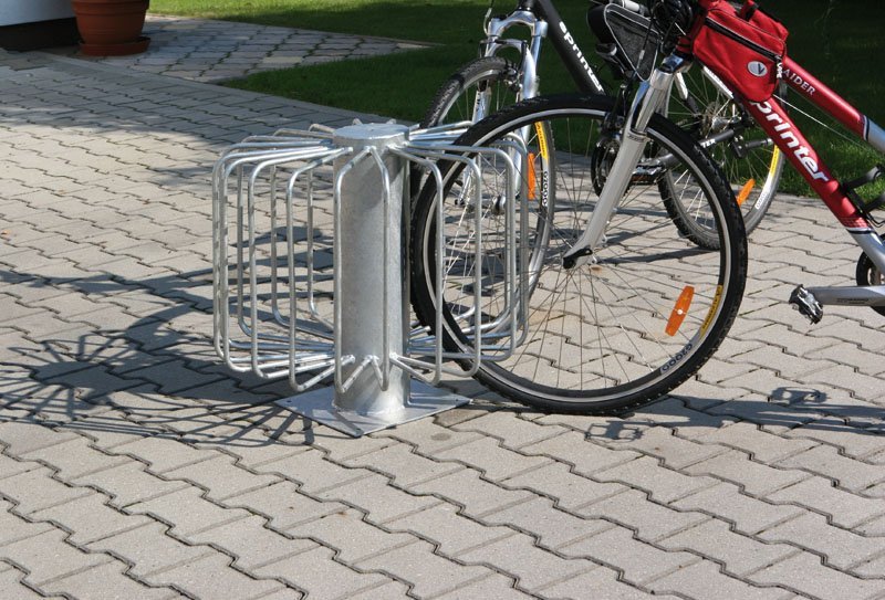 Bike stand usable for all types of bikes with all standard tire sizes. The supporting parts of the racks are made of steel profiles resistant even to rough handling. It is suitable for placing in a space and for a larger number of wheels - up to 10.