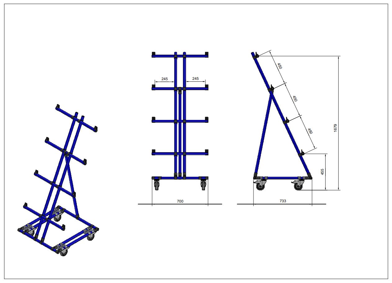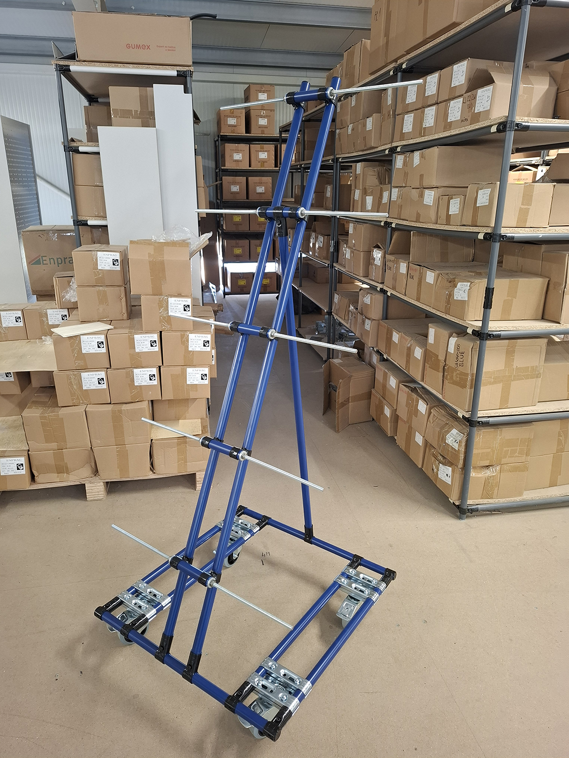 A spool trolley is a type of trolley that is designed for storing and transporting large spools of wire and cable. The wheels are equipped with brakes that prevent spontaneous movement when the cart is not in use. The color of the structure can be selected according to the available tubes on the website.