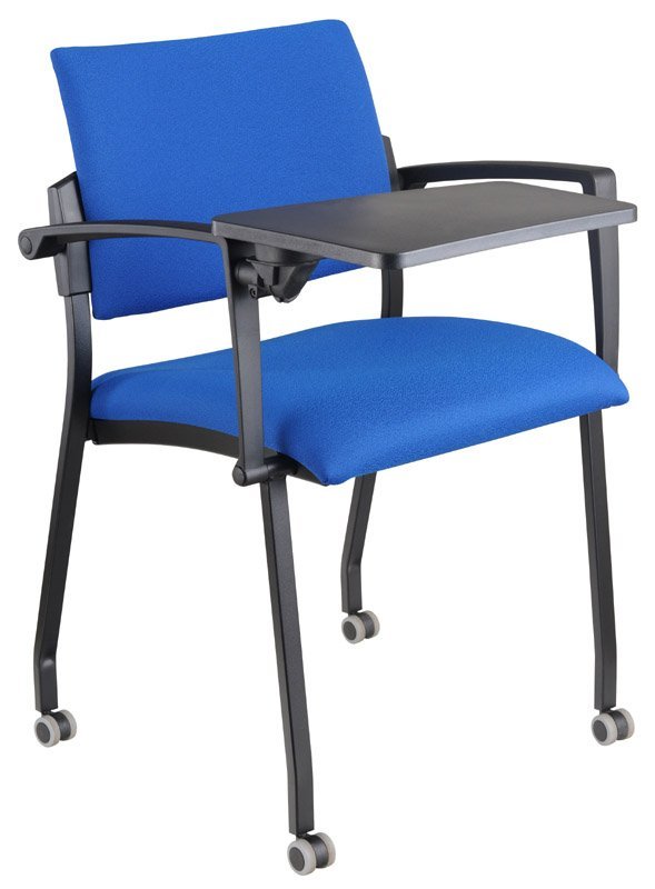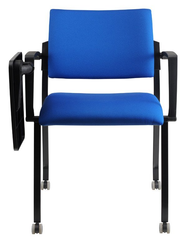 Upholstered conference chair with a very solid construction, wide seat, richly padded backrest, cover fabric under the seat. Can be supplemented with armrests, frame black, silver or chrome. Plastic or upholstered back, price without armrests in basic fabric. Load capacity 130 kg, stackable 5 pcs..
