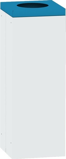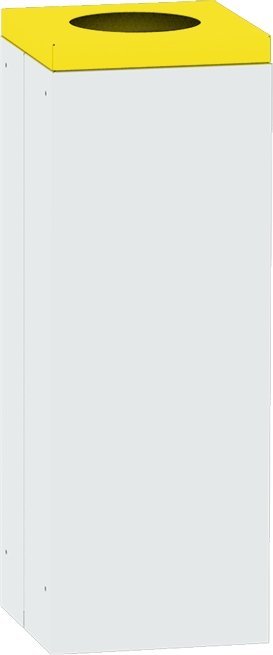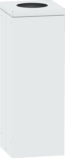 Square stable basket suitable for waste sorting. Height 700 x width 295 x depth 295 mm, volume 57 l. Basket color light gray RAL 7035, lid with a ø 200 mm circular opening in different colors to distinguish the type of waste. For internal use only.