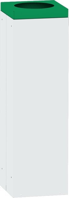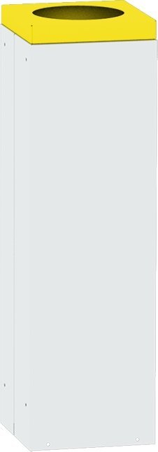 Square stable basket suitable for waste sorting. Height 700 x width 255 x depth 255 mm, volume 42 l. The color of the bin is light gray RAL 7035, the lid with a circular throw of ø 150 mm in different colors to distinguish the type of waste. For internal use only.