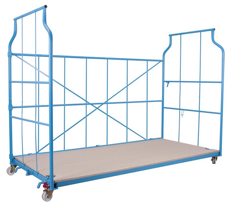 Standard Corlette® is a stackable mobile container with three lattice walls. Dimensions height 1850 x width 1200 x depth 1150 mm. Suitable for storage and handling of goods. Stackable in 3 height levels, so you can make full use of the storage space. Easy handling thanks to plastic wheels (1x braked). Color RAL 5012. On request, it is possible to modify the trolleys according to your wishes!