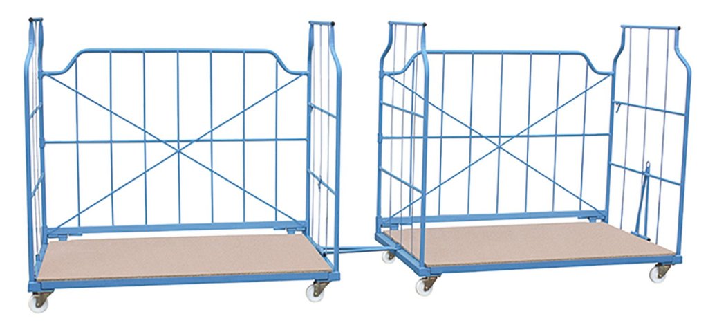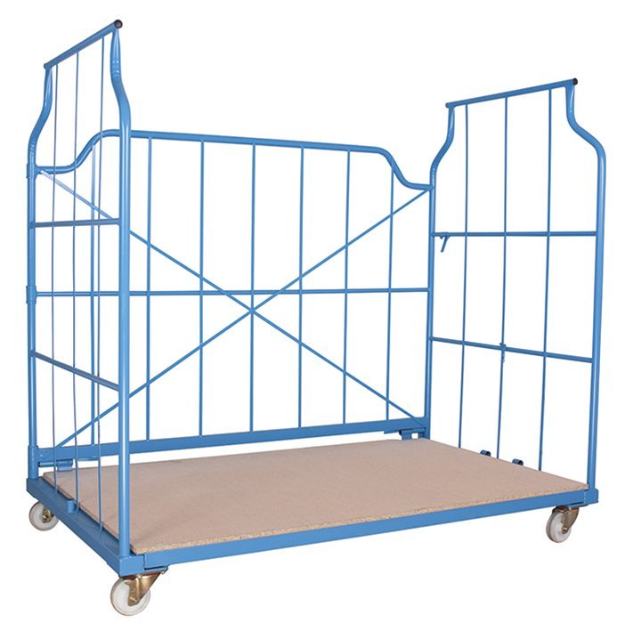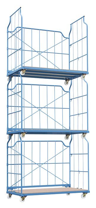 Standard Corlette® is a stackable mobile container with three lattice walls. Dimensions height 1800 x width 1300 x depth 1150 mm. Suitable for storage and handling of goods. Stackable in 3 height levels, so you can make full use of the storage space. Easy handling thanks to plastic wheels (1x braked). Color RAL 5012. On request, it is possible to modify the trolleys according to your wishes!
