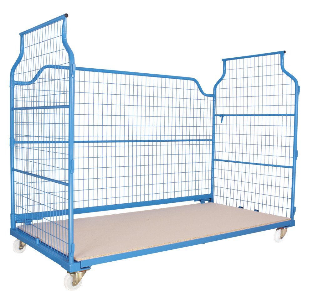 Standard Corlette® is a stackable mobile container with three lattice walls. Dimensions height 1850 x width 2400 x depth 1150 mm. Suitable for storage and handling of goods. Stackable in 3 height levels, so you can make full use of the storage space. Easy handling thanks to plastic wheels (1x braked). Color RAL 5012. On request, it is possible to modify the trolleys according to your wishes!