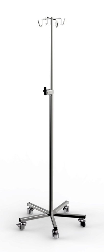 Stainless steel table with drawers and infusion stand. Height 840 mm, width 770 mm, depth 600 mm. Infusion stand adjustable in the range of 1300 - 2100 mm. The spacious table top allows you to store a large number of devices and tools. Easy handling is ensured by 4 swivel wheels, 2 of which have a brake.