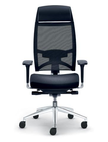 Office chair, high backrest, black mesh, height-adjustable headrest, TI synchronous mechanism, sliding seat, metal back holder N2 effect aluminum or N6 polished aluminum, black nylon cross, 60 mm wheels, gas piston, price without armrests.< /p>