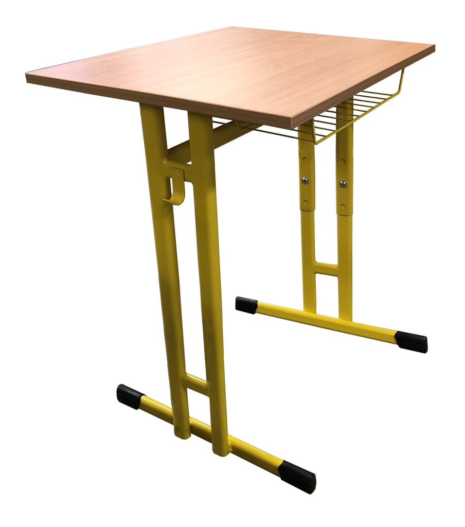 Student's desk, one-seater height-adjustable. LTD 18mm worktop with 2mm ABS edge, straight corners. Board size 700 x 500 mm. Steel construction from flat oval profiles. Construction color according to the RAL sample.