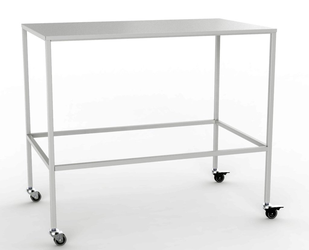 The surgical table is made of sheet metal with a thickness of 0.8 mm. Height 880 mm, width 1000 mm, depth 600 mm. The spacious table top allows you to store a large number of devices and tools. Easy handling is ensured by 4 swivel wheels, 2 of which have a brake.