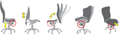 Office and medical swivel chair with a back made of breathable polymer. The chair is equipped with a synchro mechanism with adjustable height and seat depth, height and inclination of the back. The support mechanism is equipped with an adjustment of the pressure resistance of the back according to the weight of the sitter so that sitting can be as pleasant as possible, so it is possible to practice active sitting without locking in a specific position.