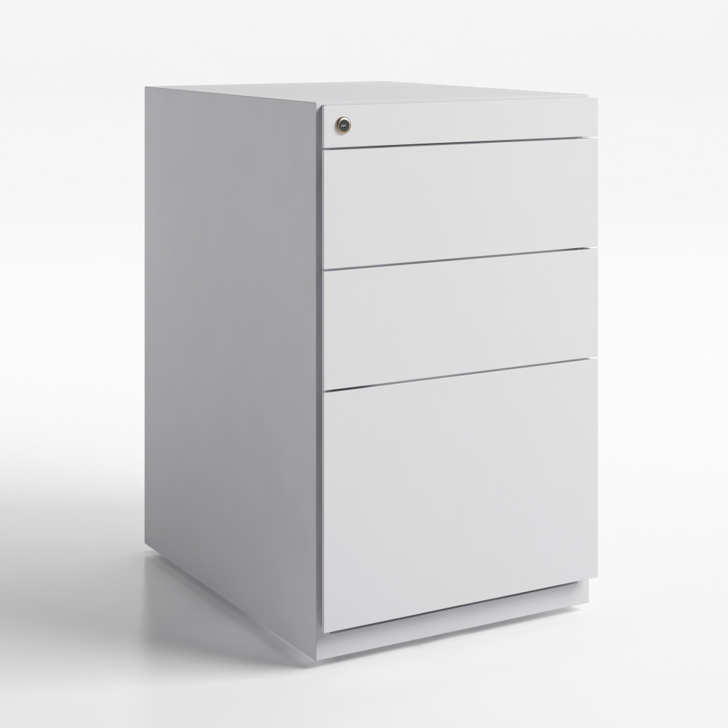 Office additional containers or under the table top, central lock, two standard drawers, one for hanging files. Height 698 - 718, width 420, depth 565 mm. Variant without top plate. Extension of standard drawers 80 or 100%, extension of high drawer 100%.