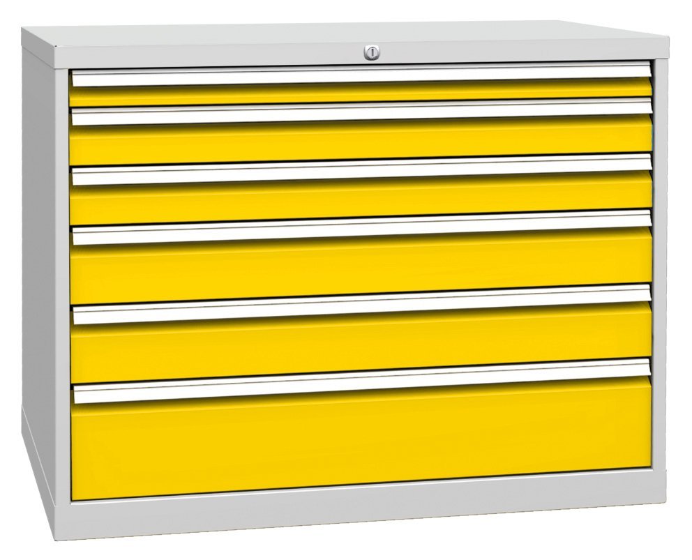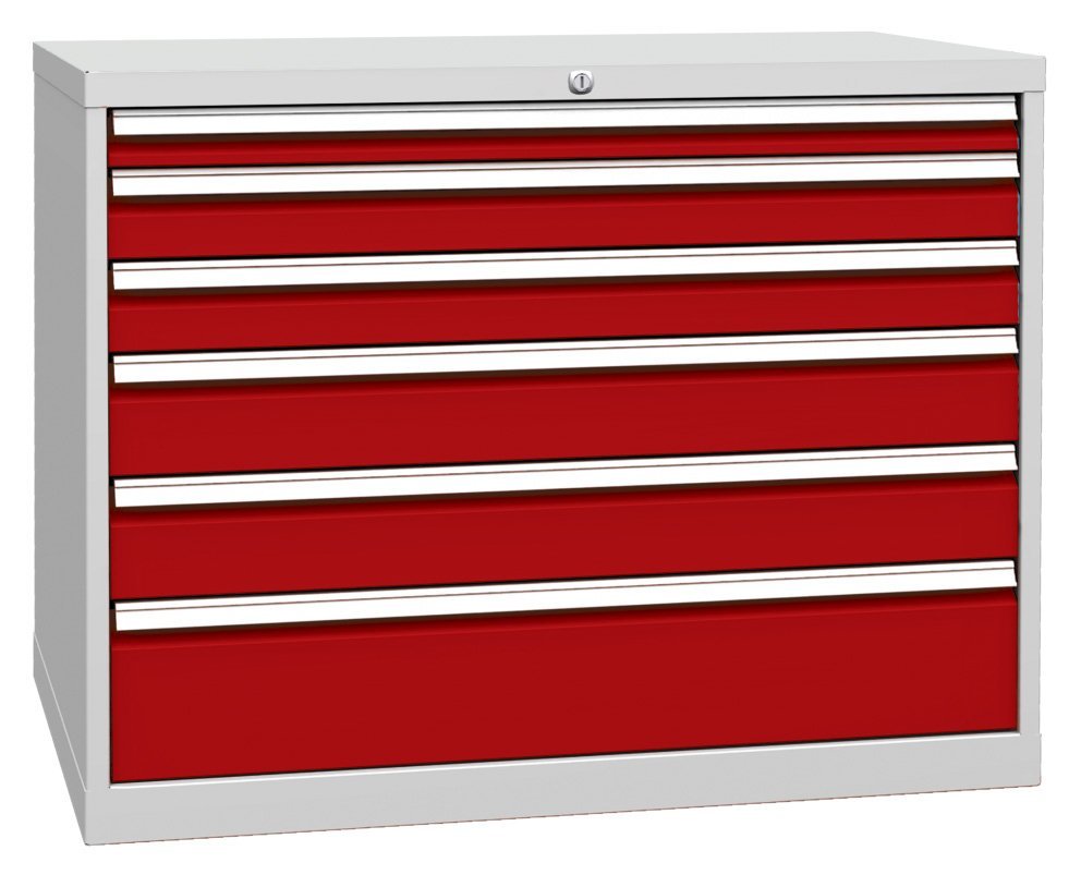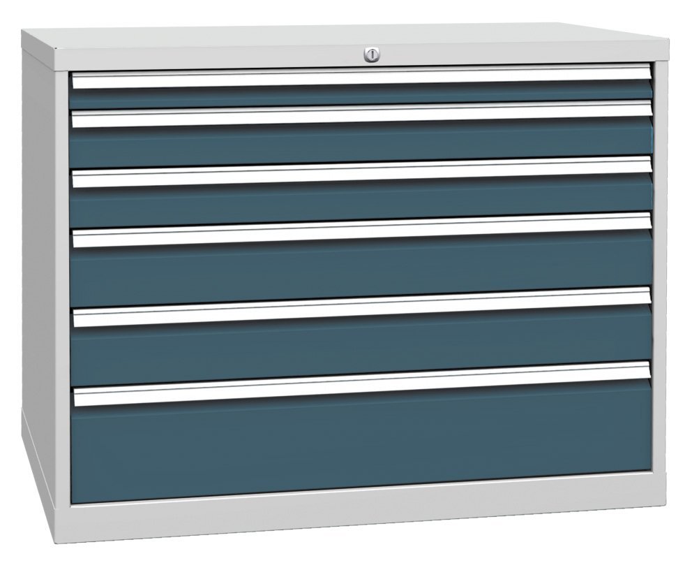 Six Workbench drawer container, width 1000, height 810, depth 700 mm. 1x socket 60, 2x 90, 2x 120, 1x 180 mm. Body color RAL 7035 full description and parameters