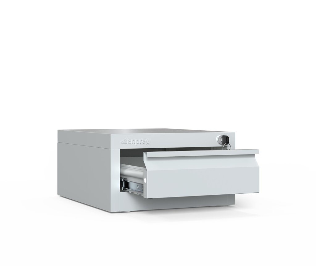 Hanging container with a drawer for a work table, height 180, width 500, depth 400 mm. 1x socket, color ESD gray RAL 7035.