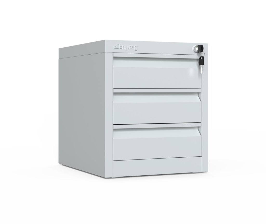 Hanging container with three drawers for a work table, height 380, width 500, depth 400 mm. 3x socket, color ESD gray RAL 7035. full description and parameters