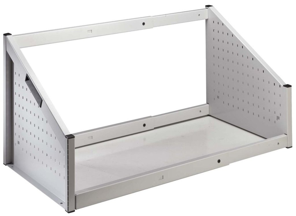 Table stand, size 54 x 27D. The basic structure of the stand consists of bolted reinforced welded steel sheets, the side walls are perforated for hanging carriers, tool frames and drawers.