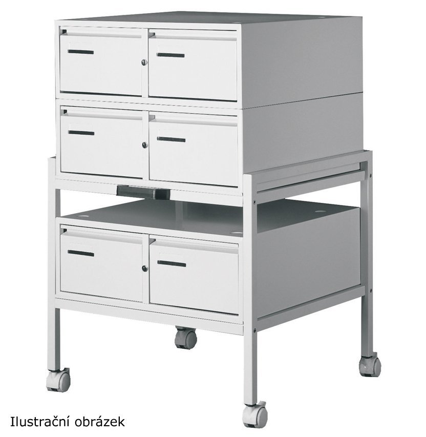 Table for two-drawer filing cabinet A5 type G45009, width 626, height 600, depth 590 mm. The displayed file cabinets are not included in the price of the table. The color of the table is light gray RAL 7035, other colors with an additional charge on request.