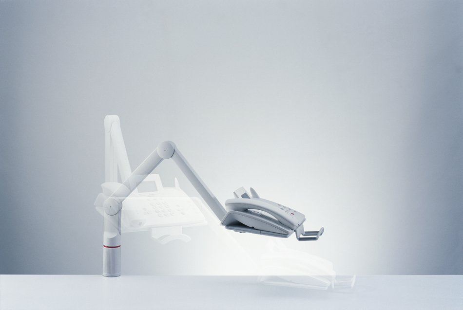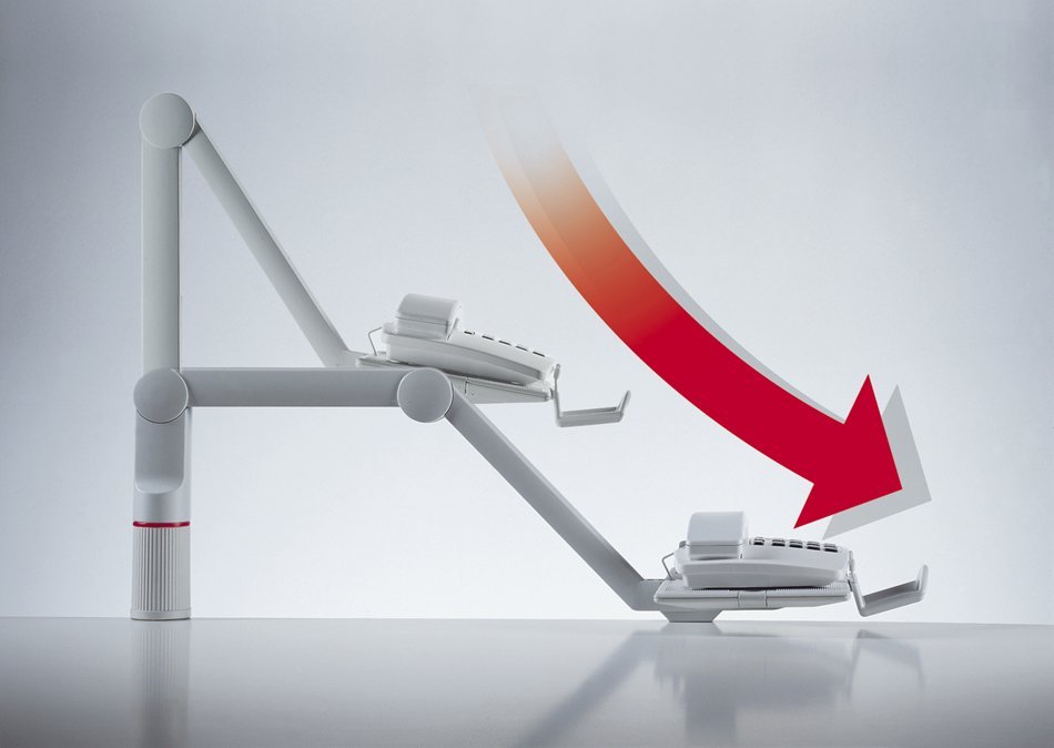 - saves space on the work table and enables optimal positioning of the phone for comfortable operation