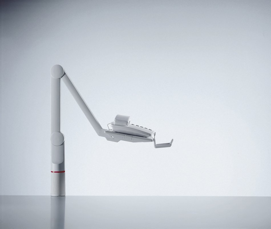 - the inclination of the support plate automatically adapts to the setting of the arm position.