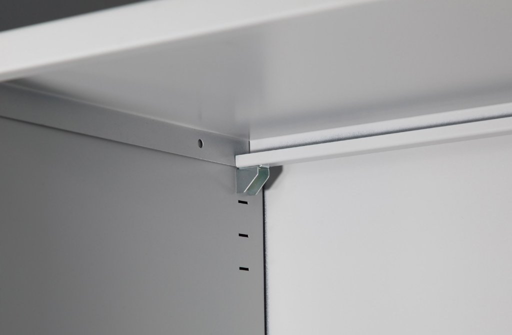 Smooth shelf including supports for attaching to the cabinet. Load capacity 40 kg, color light gray RAL 7035. For cabinets with a width of 1200 mm. For other options, see product variants.