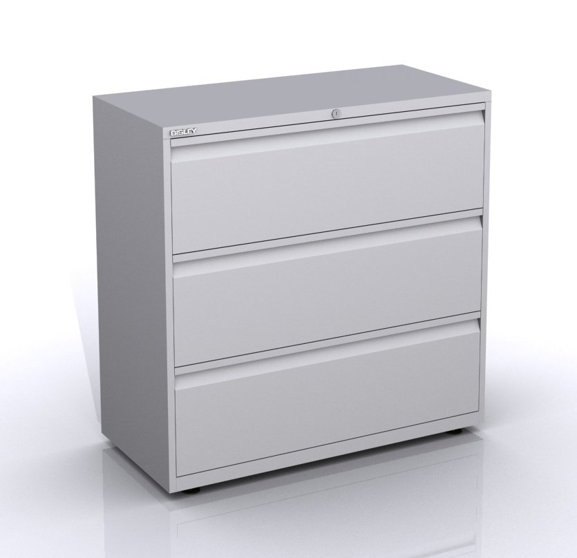 Very high-quality three-drawer filing cabinet for storing A4 hanging files and Foolscap with a central lock. Width 1000 mm, height