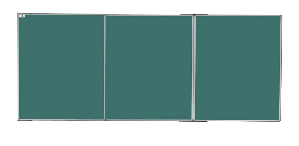 Green three-part magnetic board with two-layer ceramic surface of the highest quality. Anodized aluminum frame in a natural shade, full description and parameters