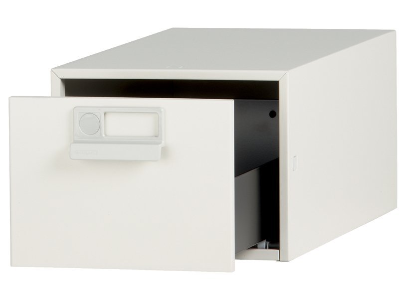 One-drawer metal filing cabinet for A5 format, width 271, height 206, depth 422 mm, cylinder lock, various colors.