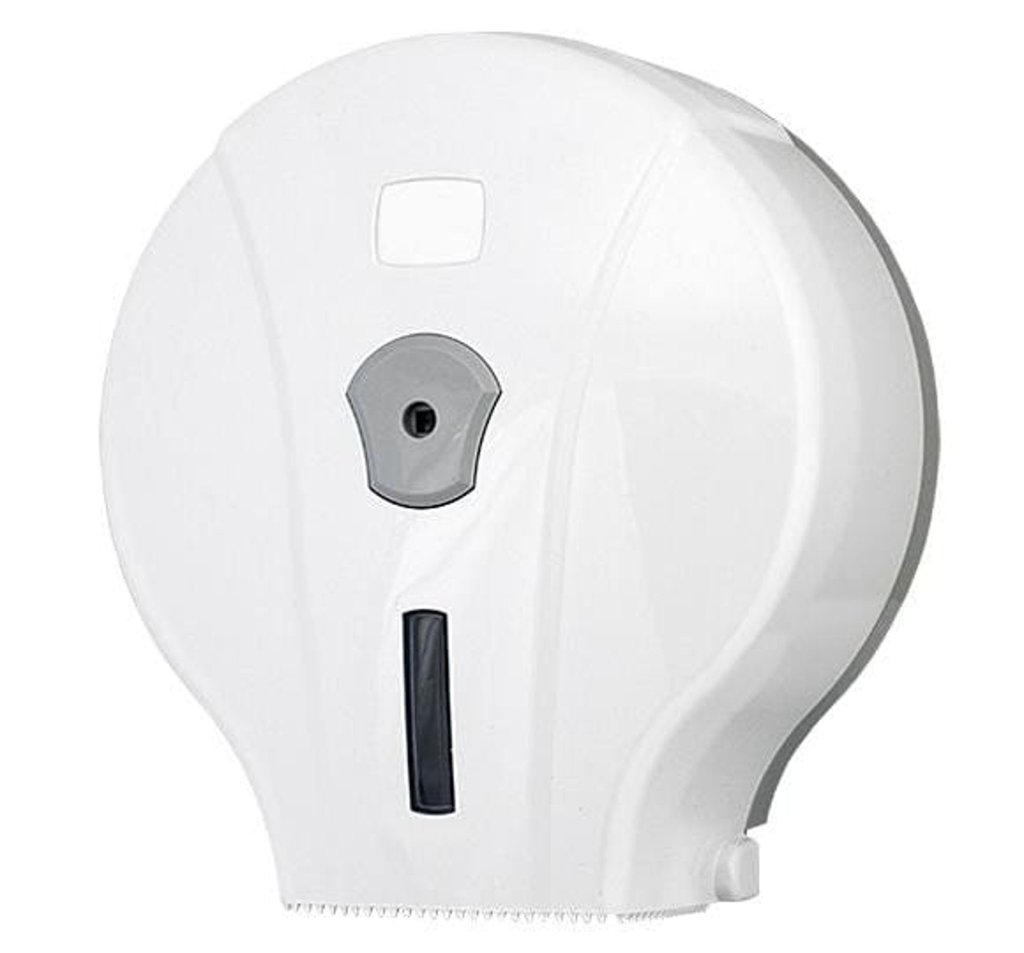 Plastic dispenser for toilet paper Jumbo Mini (maximum center diameter 19 cm). View for checking the paper status, lockable. full description and parameters