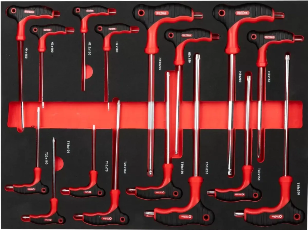 6-piece set of TORX screwdrivers stored in a plastic module. Size 185 x 420 mm.
